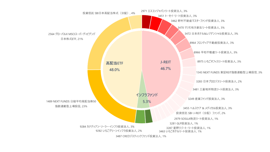 Jリートの上昇は一服感が出てきたのに対し、日本株は好調だったこともあり、高配当ETFの比率が若干上昇しました。