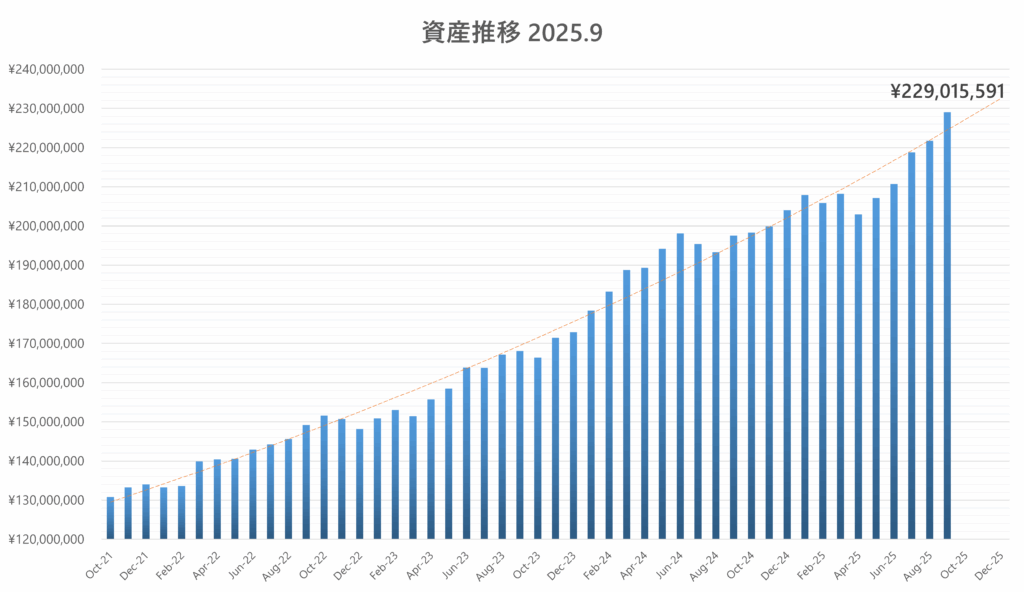 2025年9月の資産総額は2億2,901万5,591円となりました。