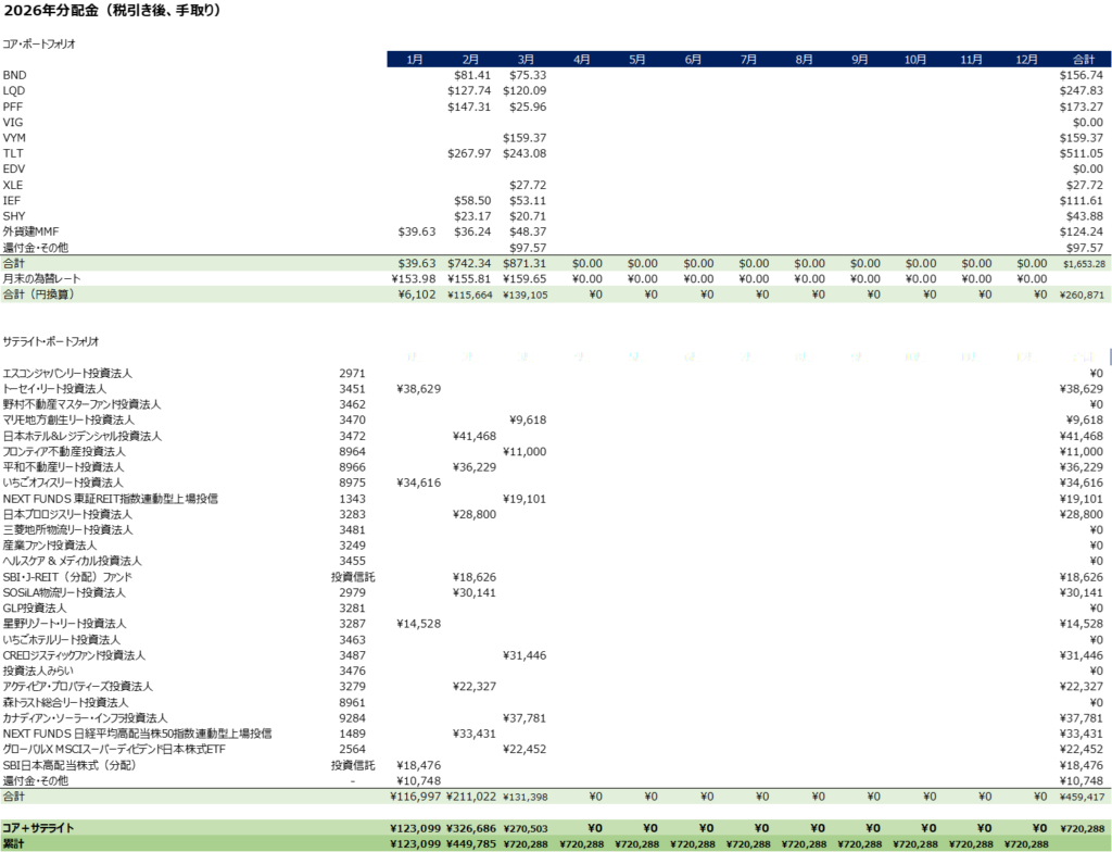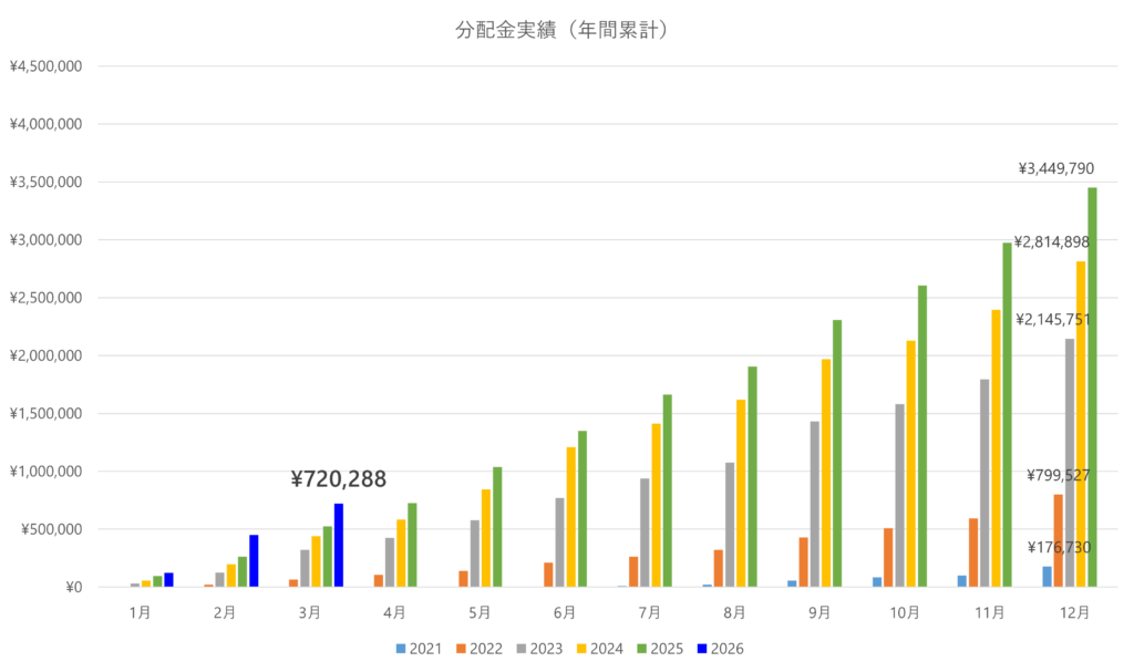 いつものとおり、今回は同月(2026年3月)の分配金の実績について報告します。